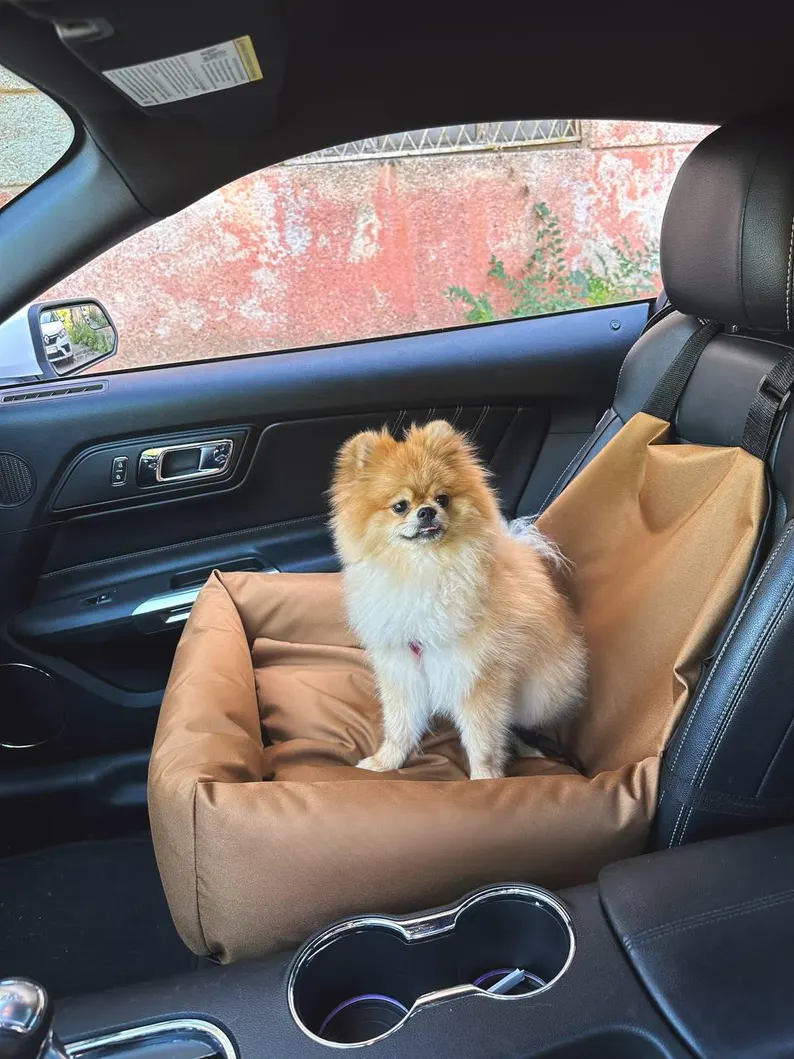 Ensure your pet’s safety and comfort during car rides with this cozy beige car seat. Specially designed for small dogs and cats, this seat provides a secure and elevated spot, allowing your furry friend to enjoy the view while staying safe. The soft cushioned interior offers maximum comfort, reducing travel anxiety. Made with durable, water-resistant fabric, it protects your car from fur and spills while being easy to clean. The seat features adjustable straps that attach securely to the car seat, along with a built-in safety leash to keep your pet in place. Perfect for road trips, short drives, and everyday use!