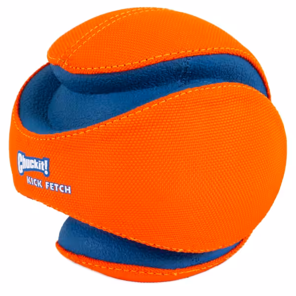 The Chuckit!® Kick Fetch® Dog Toy helps build bonds between dogs and their pet-parents by providing hours of interactive fun. The Kick Fetch is great for outdoor games of fetch, soccer, or toss and is covered in bright colors to make it easily visible in large open fields. Made with rubber and foam, and covered in durable canvas fabric, the Chuckit! Kick Fetch has deep ridges which make it easier for your dog to retrieve and is gentle on your dog’s mouth. Get active and Make Fetch Happen® with the Chuckit! Kick Fetch Dog Toy.